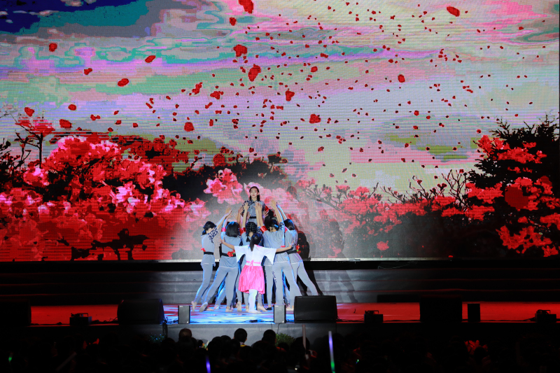 饱含深情的歌曲《共和国的春天》《每当想起你》,活力四射的舞蹈《酷舞青春》,字正腔圆的快板儿《升旗》,神秘莫测的传统民间艺术《变脸》,创意新颖的灯光秀《奔跑的故事》,激情四射的器乐合奏《Purple passion》《金蛇狂舞》……精彩的节目纷至沓来,在掌声和欢呼声中,晚会迎来一个又一个高潮。