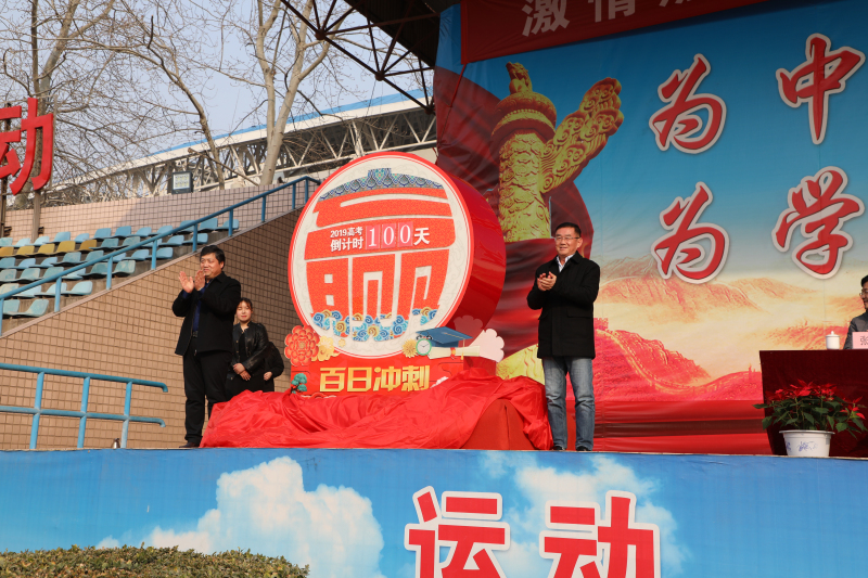 全国著名教育专家、澳门金年会app下载官网校长李金池先生,澳门金年会app下载官网党委书记、执行校长高军同志共同为高考百日誓师揭牌,正式吹响冲刺2019年高考的号角。