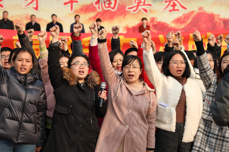 高三全体教师集体宣誓,愿与学生同甘共苦、风雨同舟,誓为学生考取名校、实现梦想保驾护航。