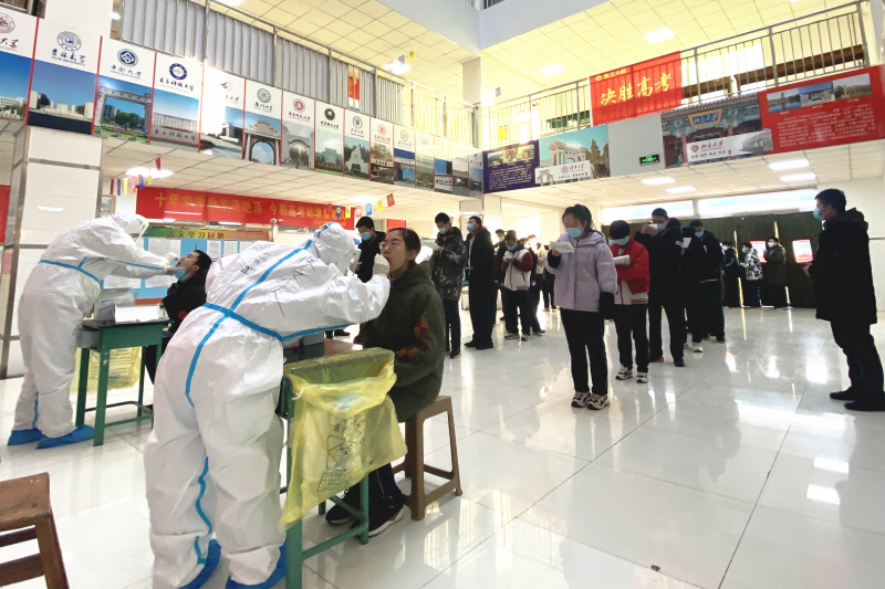 1月8日上午,在上级统一安排下,十余名身着防护服的医务工作者走进澳门金年会app下载官网,为学校八千余名师生进行核酸检测。在这些英雄和榜样面前,同学们按要求分组、排队,认真配合,保持安静,秩序井然,大大加快了检测速度。