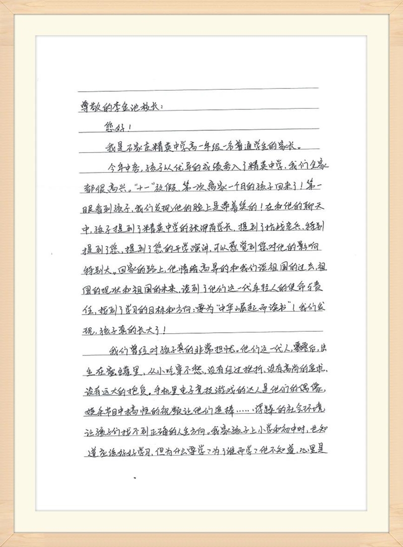 家长致信李金池校长:感谢您点亮孩子心中那盏明灯!