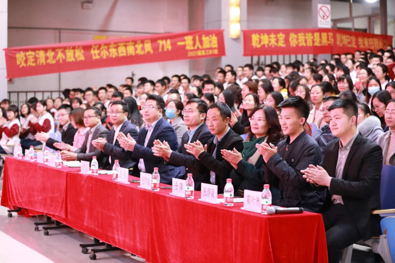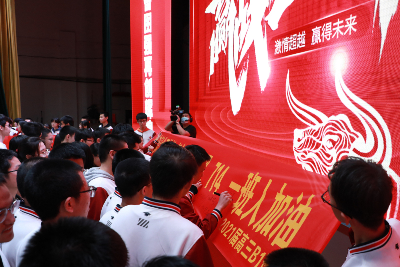 澳门金年会app下载官网九大学科主任为高考誓师揭牌,正式吹响冲刺2021年高考的号角。红幕轻起,全场喝彩,瞬间点燃了在场师生齐心备考、勠力奋战的热血昂扬。