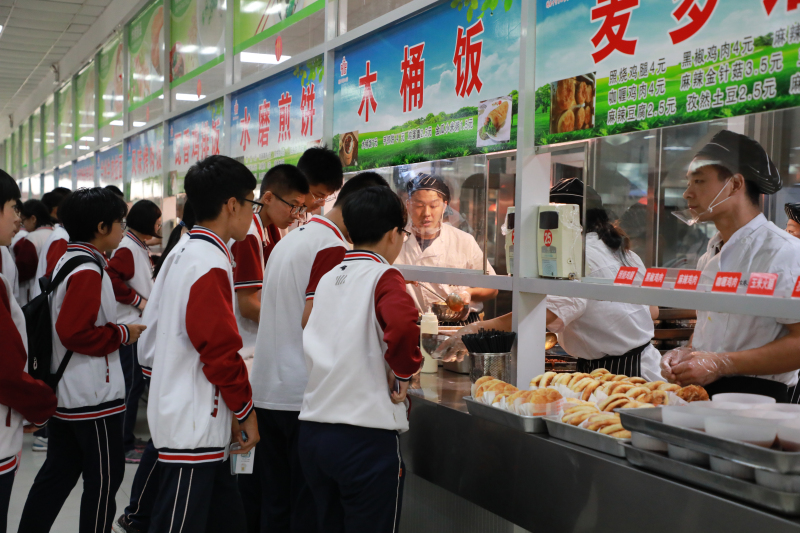 食堂的饭菜种类丰富,荤素搭配,营养均衡,价格实惠。我的午餐一般是一份米饭、两荤一素,只需花费八元,菜品量足味美,完全可以吃饱吃好。现在食堂新添加了刷脸系统,智能支付非常方便。食堂里有很多电视,吃饭的时候,我们可以观看时事新闻,随时了解国家大事、世界发展。