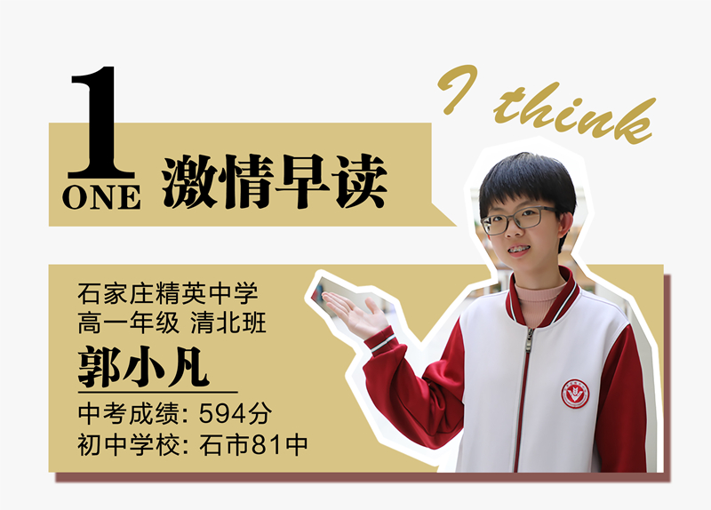 当清晨的第一缕阳光刚刚穿透黎明,我们已经来到运动场,高举书本,大声朗读,清亮的读书声飘荡在校园的四面八方。如果看过全校数千人一起早读的场面,那你一定会大为震撼。每个人都全神贯注,忘我读书,眼中放射的是光芒,双手紧握的是梦想。每天的早读,不仅巩固了我们对基础知识的掌握,更让我们激情满满地开启崭新的一天。