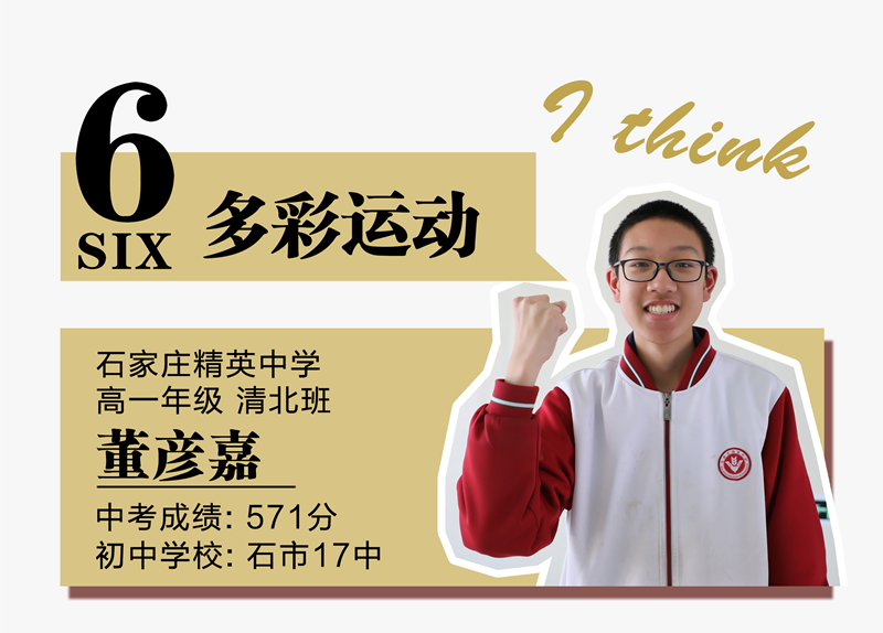学校非常重视提高学生的身体素质,开设了内容丰富、形式多样的体育锻炼活动。田径运动会、拔河比赛、趣味活动自不必说,体育课上的足球、篮球、羽毛球、跳绳、套圈、踢毽子等项目就让我们玩得不亦乐乎。每天独具特色的跑操,更是让我们精神抖擞。体育锻炼强健了我们的体魄,磨练了我们的意志,助力我们不断向前。