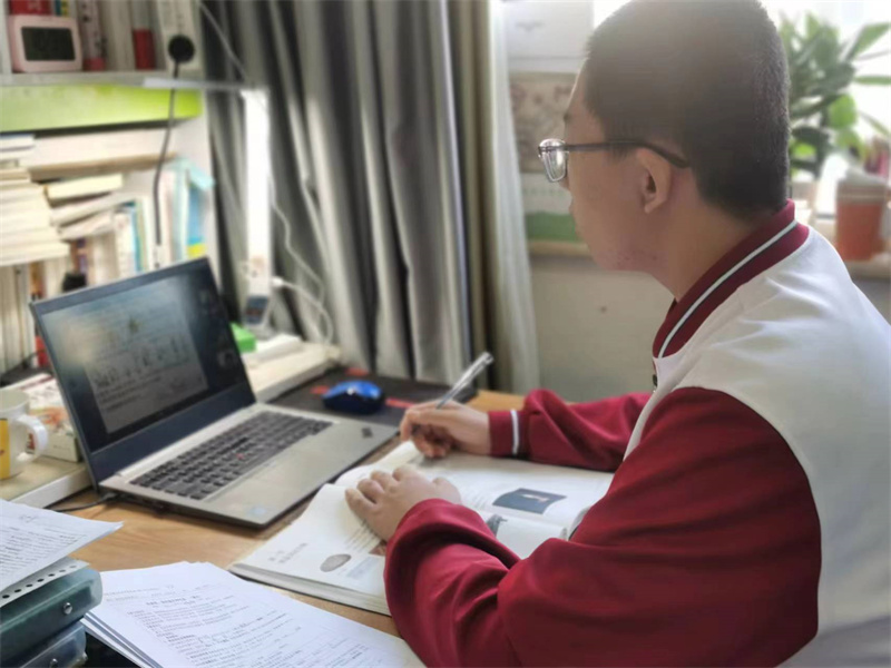 转入线上学习已经20天的时间,我们在家学习也已经有了自己的节奏,课堂气氛活跃,自习紧张高效,老师认真负责,在线答疑更是及时,耐心解决同学们的问题。