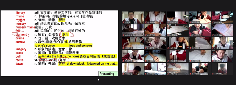 课堂上师生互动、生生互动,各环节学生都参与进来。在教室的小屏幕上,可以看到孩子们独立思考、积极讨论、自信展示的样子,也可以看到他们奋笔疾书、勾画知识点的样子。线上教学不减质,居家学习不降效。线上教学活动,改变的是上课的地点和授课方式,不变的是澳门金年会app下载官网师生对学习的热爱。