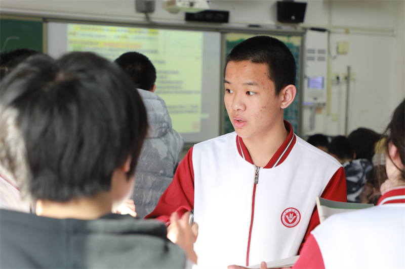 课堂上,我在组议7分钟的时间里往往会把握一种“3+1+2+1”的节奏,“3”是对预设展的思考与交流,这时我们一般会读题抓字眼;“1”便是大家对预设展的思路全盘抛出,这时思维最为活跃,考验的是我们思维的连贯性,这对我们是极其有益的;“2”便是对提纲疑问的解容,无需多言,真正的学习者不仅要自己明白,更须尝试将他人讲懂;最后的”1”对我来说就有很大的弹性,大部分是补充上述三部分超出的时间。如果有剩余我会选择与组内成员探讨题纲内容间内在的联系,更好把握本节课的主题。善学者,才能学得深,行得远。