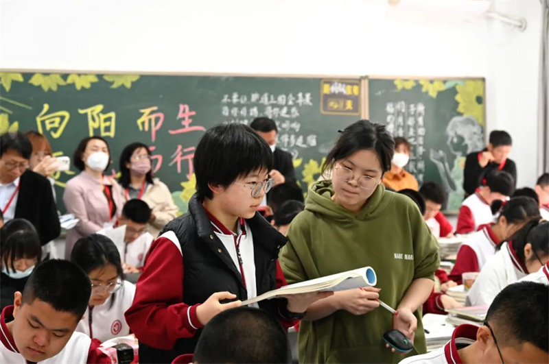 “课堂上,老师和学生都特别有激情,学习氛围很好。学生独立思考、举一反三,通过自己的推导、同学的讲解、老师的点拨,深入浅出悟出解题思路的过程,让我受益匪浅。看似轻松的课堂背后,老师的功夫一定下了很大,不然呈现不出这样精彩的课堂。”第二次来访的衡水泰华中学陈红玉老师感叹道。
